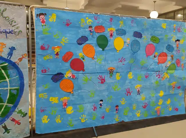 Pour célébrer la Journée Mondiale de l’Enfance, les parents, les enfants, les acteurs éducatifs ont été encouragés à porter du bleu. Les enfants ont pu se mobiliser pour créer une fresque bleue, installer des décorations bleues dans l’école… Et prendre de belles photos !