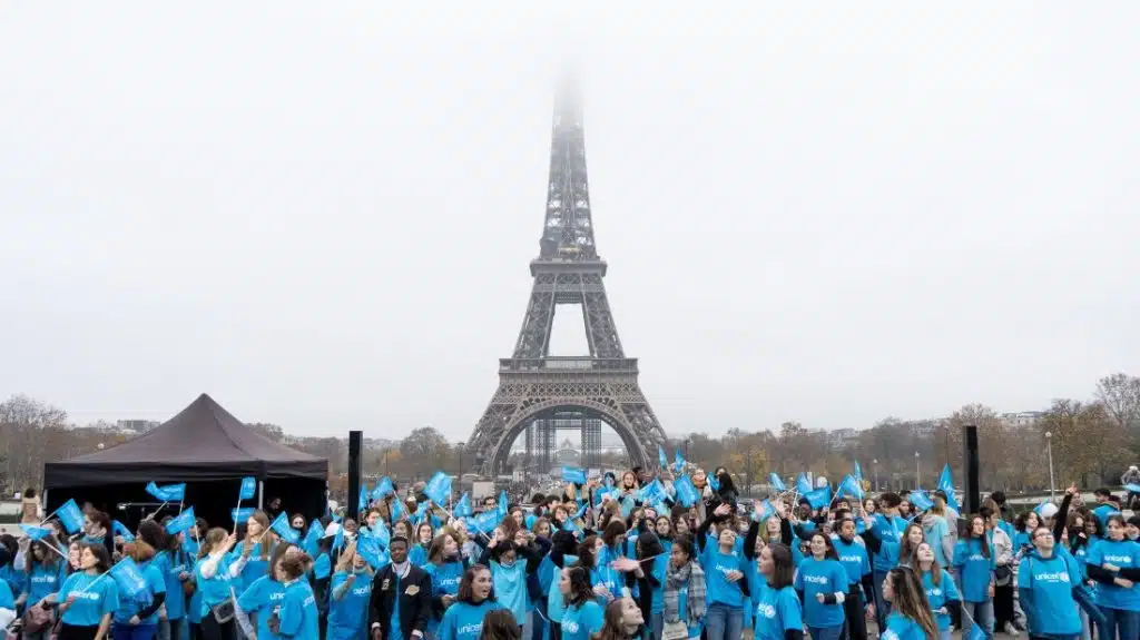 A l’occasion de la Journée mondiale des droits de l’enfant, plus de 200 jeunes bénévoles UNICEF se sont rassemblés au pied de la Tour Eiffel le samedi 20 novembre 2021. La journée a été rythmée par des flash-mobs, des danses et des discours où les jeunes Ambassadeurs et ambassadrices de l’UNICEF ont pu faire entendre leur voix.