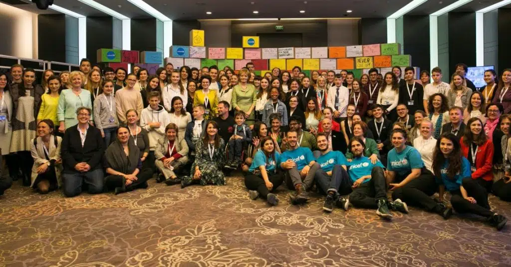 « Grâce à ces travaux et à la déclaration nous gardons espoir qu’un jour chaque enfant pourra faire entendre ses idées, ses expériences, sa voix pour construire notre futur, mais aussi pour mieux vivre notre présent. » – Eléonore, 19 ans, jeune ambassadrice UNICEF France