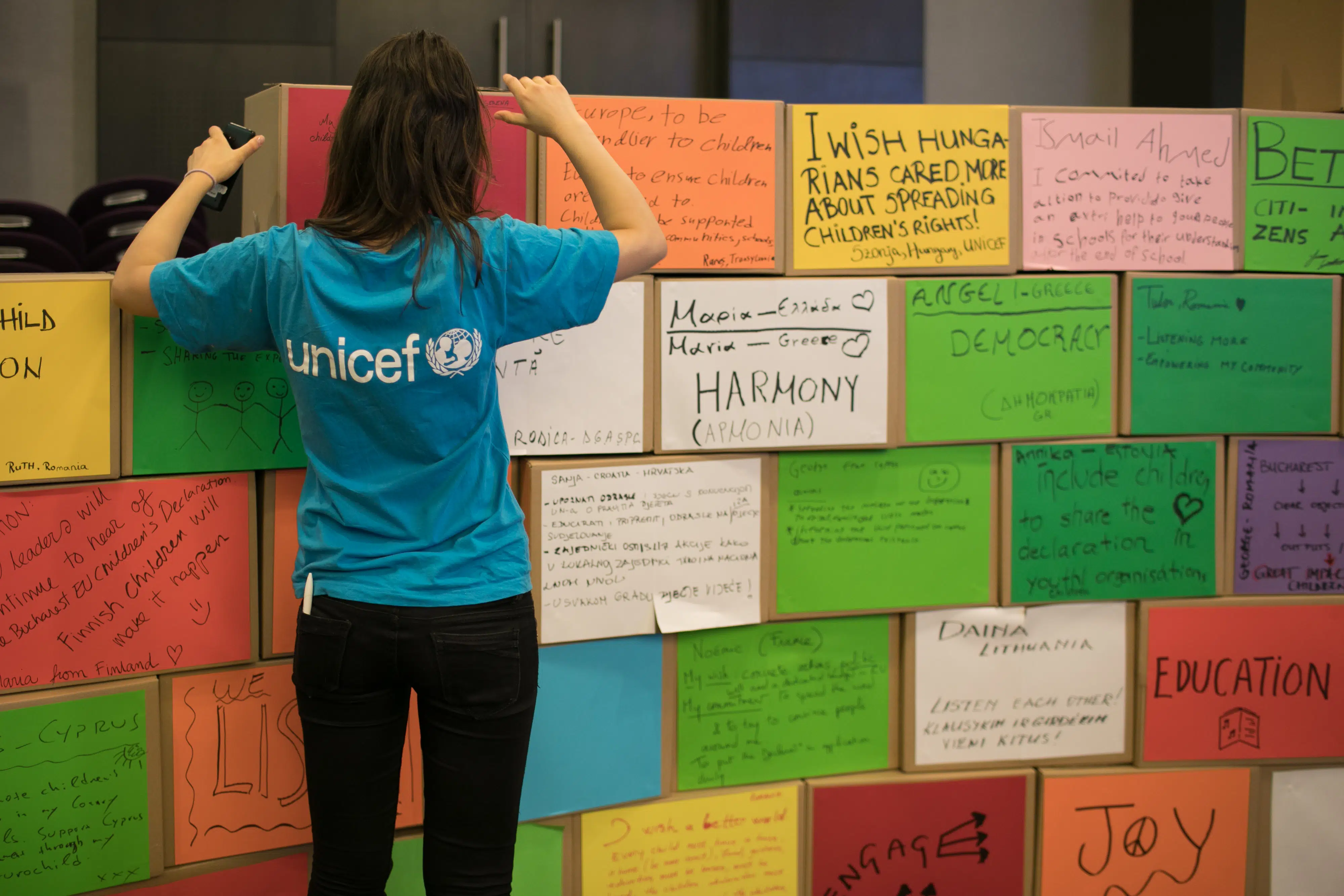 « Grâce à ces travaux et à la déclaration nous gardons espoir qu’un jour chaque enfant pourra faire entendre ses idées, ses expériences, sa voix pour construire notre futur, mais aussi pour mieux vivre notre présent. » – Eléonore, 19 ans, jeune ambassadrice UNICEF France