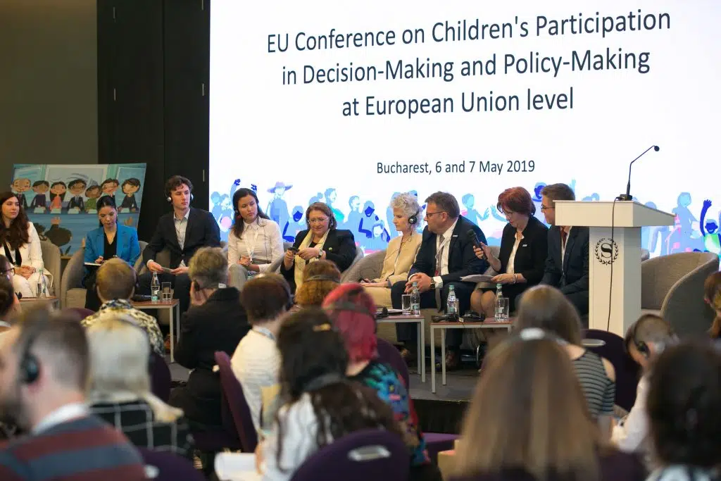 En mai 2019, 60 enfants âgés de 10 à 19 ans et issus de 16 pays différents se sont réunis à Bucarest pour finaliser la Déclaration de Bucarest et échanger avec des décideurs politiques, avant l’adoption de la Déclaration par les Etats membres de l’UE !