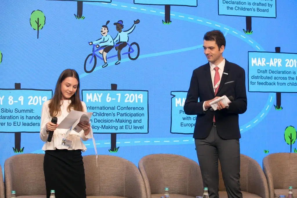 La Déclaration de Bucarest a été adoptée juste avant le sommet des dirigeants européens tenu à Sibiu (Roumanie), le 9 mai 2019. Les représentants du Conseil roumain des enfants ont pu remettre la déclaration à plusieurs dirigeants européens, puis aux ministres de la jeunesse et de l’éducation et aux représentants des 28 États membres de l’UE à Bruxelles.