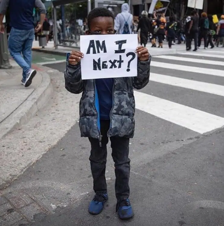 Photo de Christian Monterrosa (c) apnews via nbcnews / « Suis-je le suivant ? » Un garçon tient une pancarte lors d’une manifestation dans le centre-ville de Los Angeles, aux Etats-Unis, à propos de la mort de George Floyd. Aucun enfant ne devrait jamais poser une telle question. C’est à nous, jeunes et adultes, de nous demander de toute urgence ce que nous pouvons faire pour que chaque enfant se sente en sécurité et protégé. Chacun de nous a un rôle à jouer pour mettre fin à la discrimination raciale.