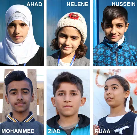 Ahad, Ziad, Helene, Hussein, Ruaa et Mohammed, les enfants irakiens impliqués dans le projet :