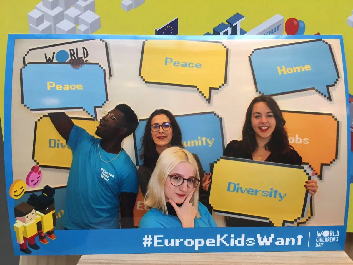 L’UNICEF et Eurochild ont organisé une rencontre entre des jeunes volontaires UNICEF de 15 pays européens (Italie, Roumanie, Bulgarie, Espagne, Pays-Bas…) pour porter la parole des jeunes européens et transmettre leur vision de l’Europe.