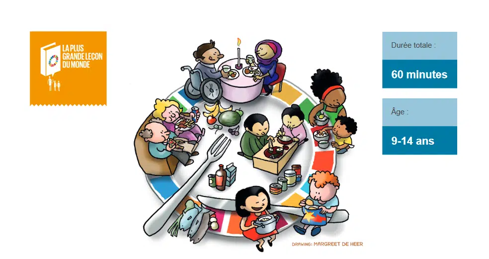 Chaque année, un thème est choisi pour la « plus grande leçon du monde », un outil de sensibilisation aux Objectifs de Développement Durable (ODD) de l’UNICEF international. Cette année, le thème est l’alimentation. A cette occasion, une fiche pédagogique a été créée, « L’histoire de ton assiette », disponible en téléchargement en cliquant ici : l’histoire de ton assiette