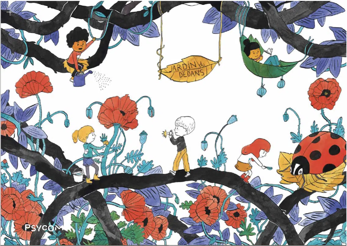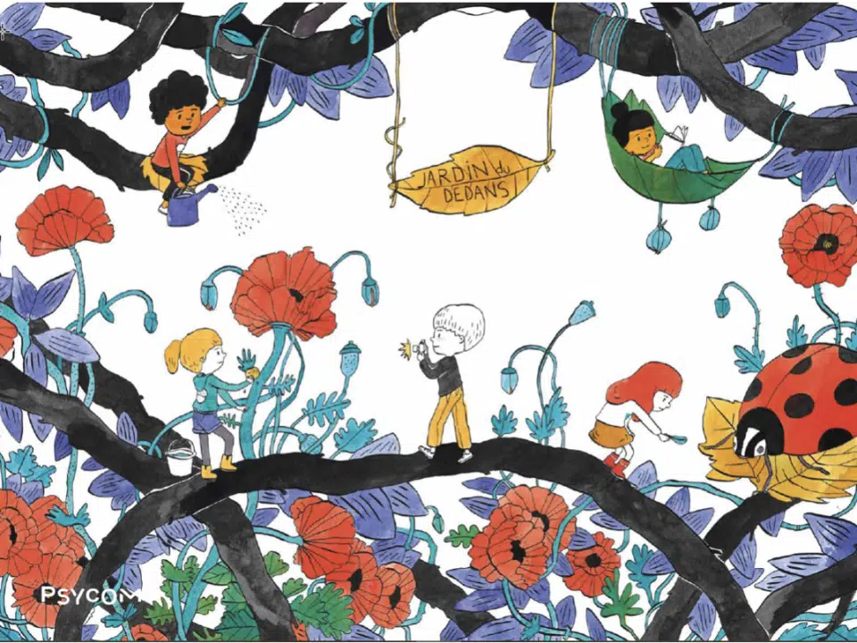 Découvrez le kit pédagogique « Le Jardin du Dedans® », créé par Psycom avec le soutien de l’UNICEF France, qui vise à sensibiliser les enfants de 8 à 11 ans à la santé mentale et aider les adultes à aborder ces questions complexes avec eux.