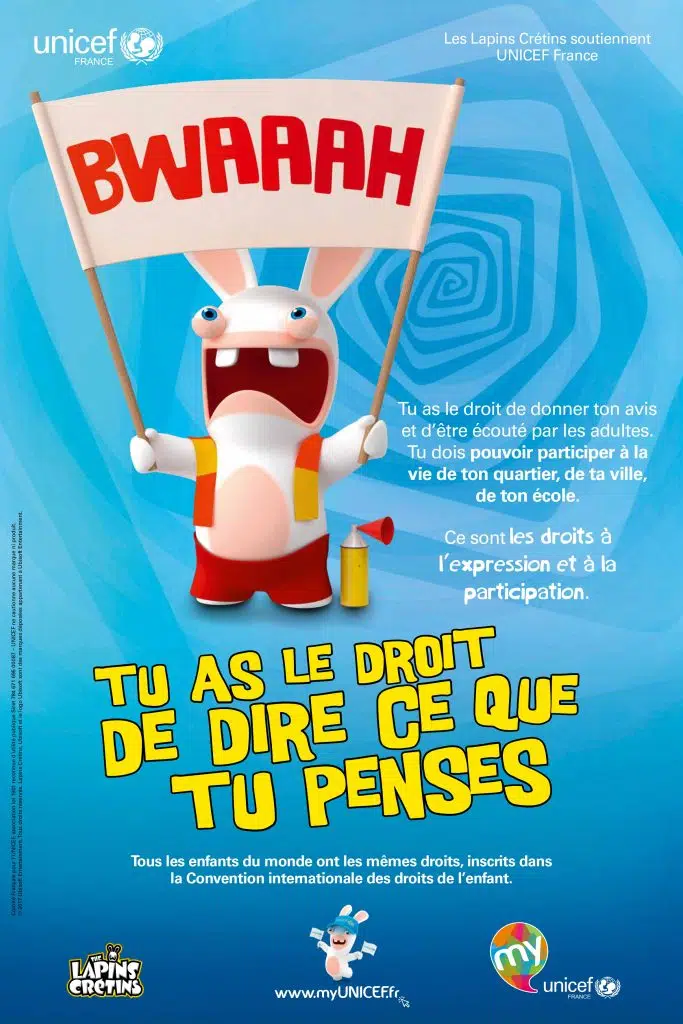 BWAAAH !!! Les Lapins Crétins s’engagent pour les droits de l’enfant.
