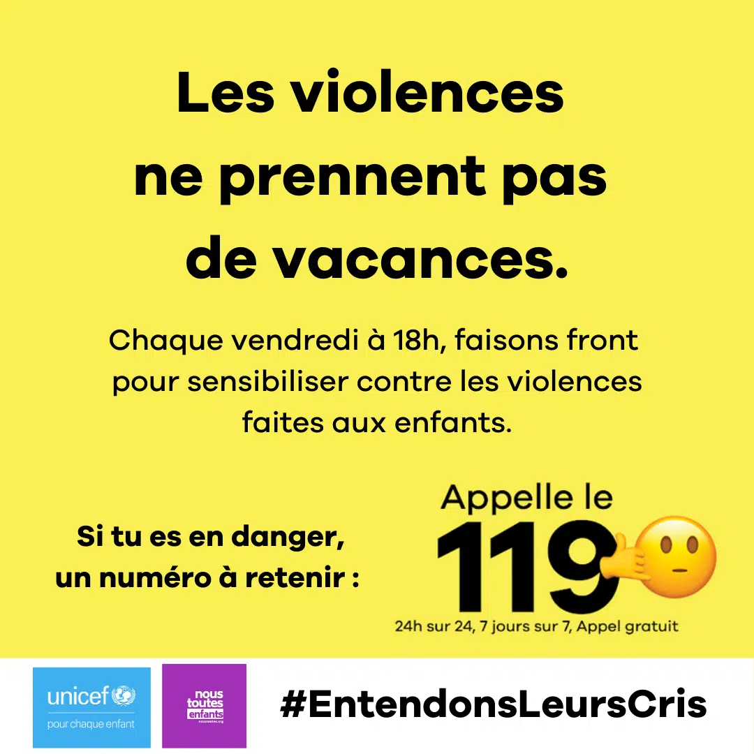 UNICEF France et le collectif Nous Toutes lancent une campagne intitulée #EntendonsLeursCris sur les réseaux sociaux, pour lutter contre les violences que vivent les enfants, qui peuvent être plus importantes pendant le confinement où on est enfermés à la maison.